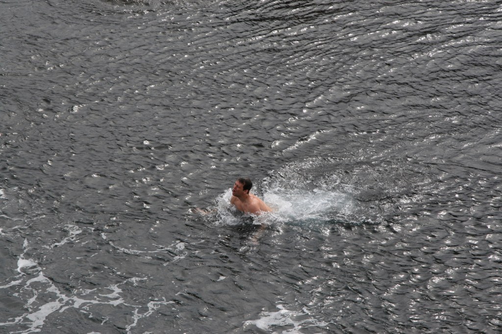 I was NOT as enthusiastic about the next activity, the polar plunge, but many of my shipmates were.