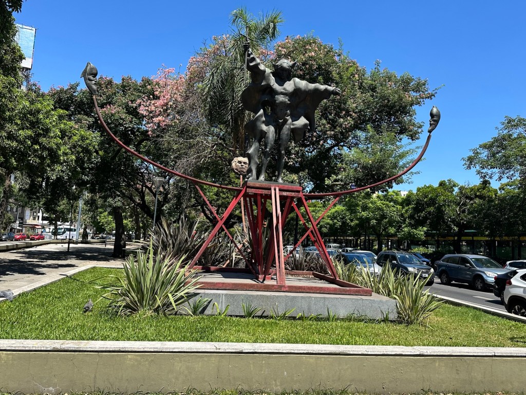 Our National Theater guide explained that this statue was originally on the roof of the theater, but was brought inside to protect it from the ravages of weather, which was causing the marble to become discolored.