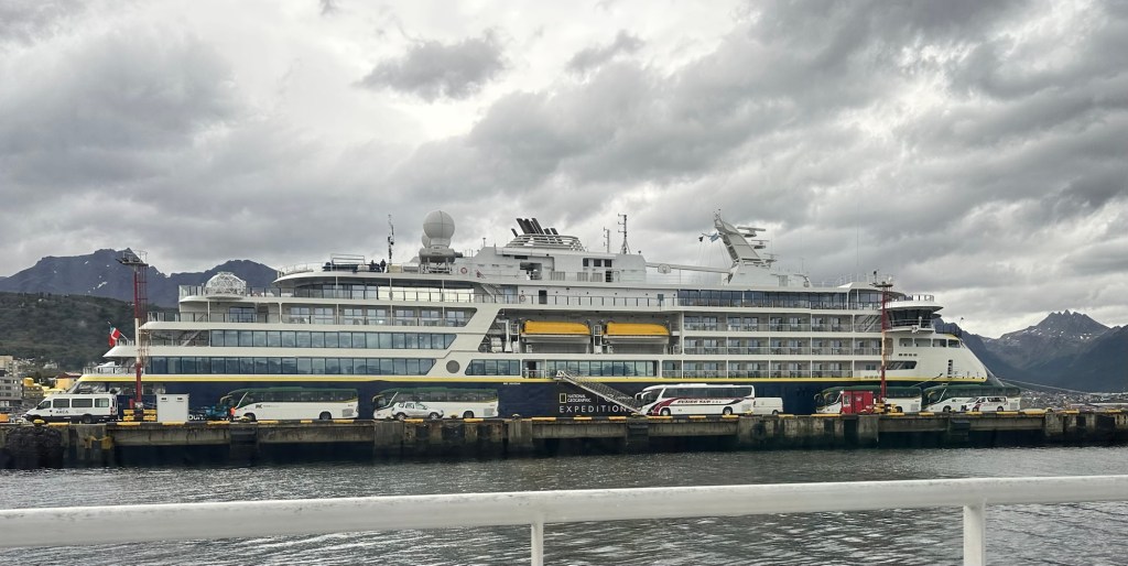 THIS time I’m retired, going solo, so I am able to spend 24 days traveling beyond the Antarctic peninsula to the South Georgia and the Falkland Islands. Instead of meeting the group in Santiago, I’m traveling to Buenos Aires. As with last time, however, we are flying to Ushuaia where we will board the ship, then sail through the dreaded Drake Passage. (Yes, my doctor gave me an adequate supply of seasickness patches. They worked well last time for me and Greg, not as effective for Mike.)