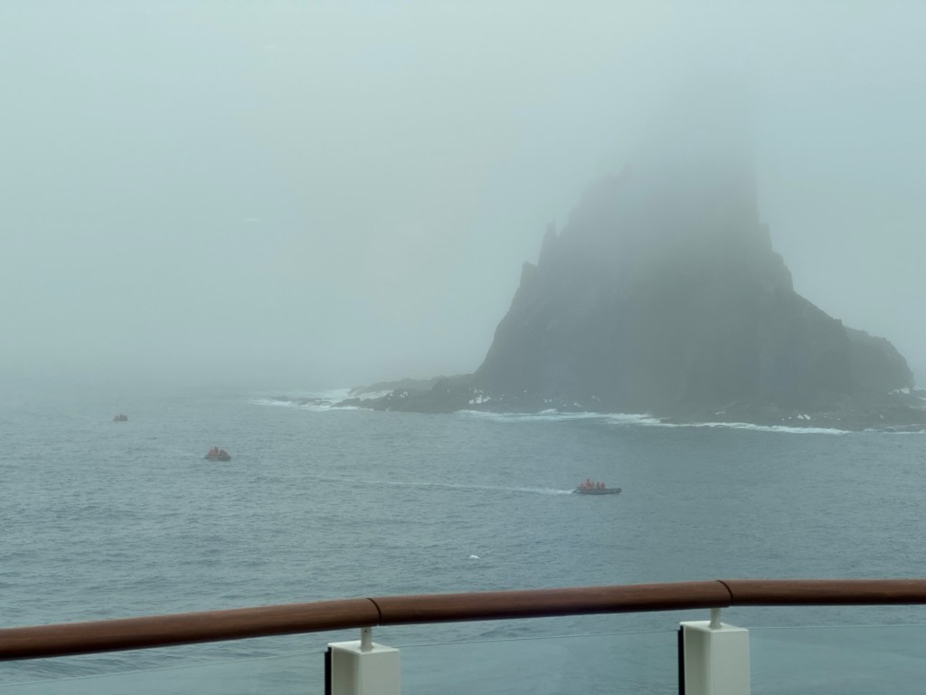 It might not look rough, but remember, that video was shot from my balcony on deck 5. Why can you see two zodiacs containing only 1 passenger, you ask? Well those are members of the crew, standing ready to pluck someone from the frigid waters, just in case the seas started to REALLY rock n roll.