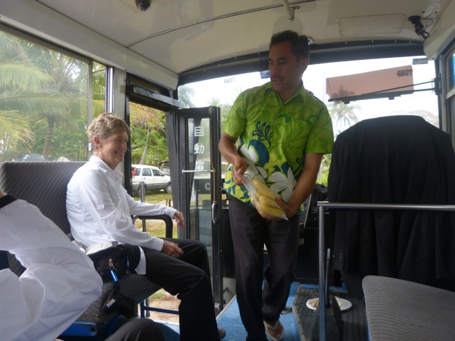 “Superman”, one of my favorite bus drivers–with our gift from “Mama”