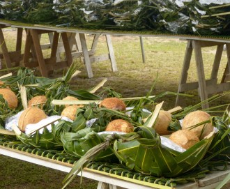 Coconuts, chicken, pork, sweet potatoes, etc al packed into these biodegradable containers. We could learn a lot from the Maori!