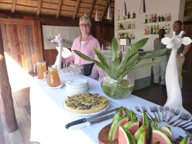 My friend Jeanne standing by the welcome “snack”. The food was INCREDIBLE…do they have such a thing as 6 stars? We had Springbok filet that was absolutely delicious, plus more standard fare, like pork loin with caramelized parsnips.
