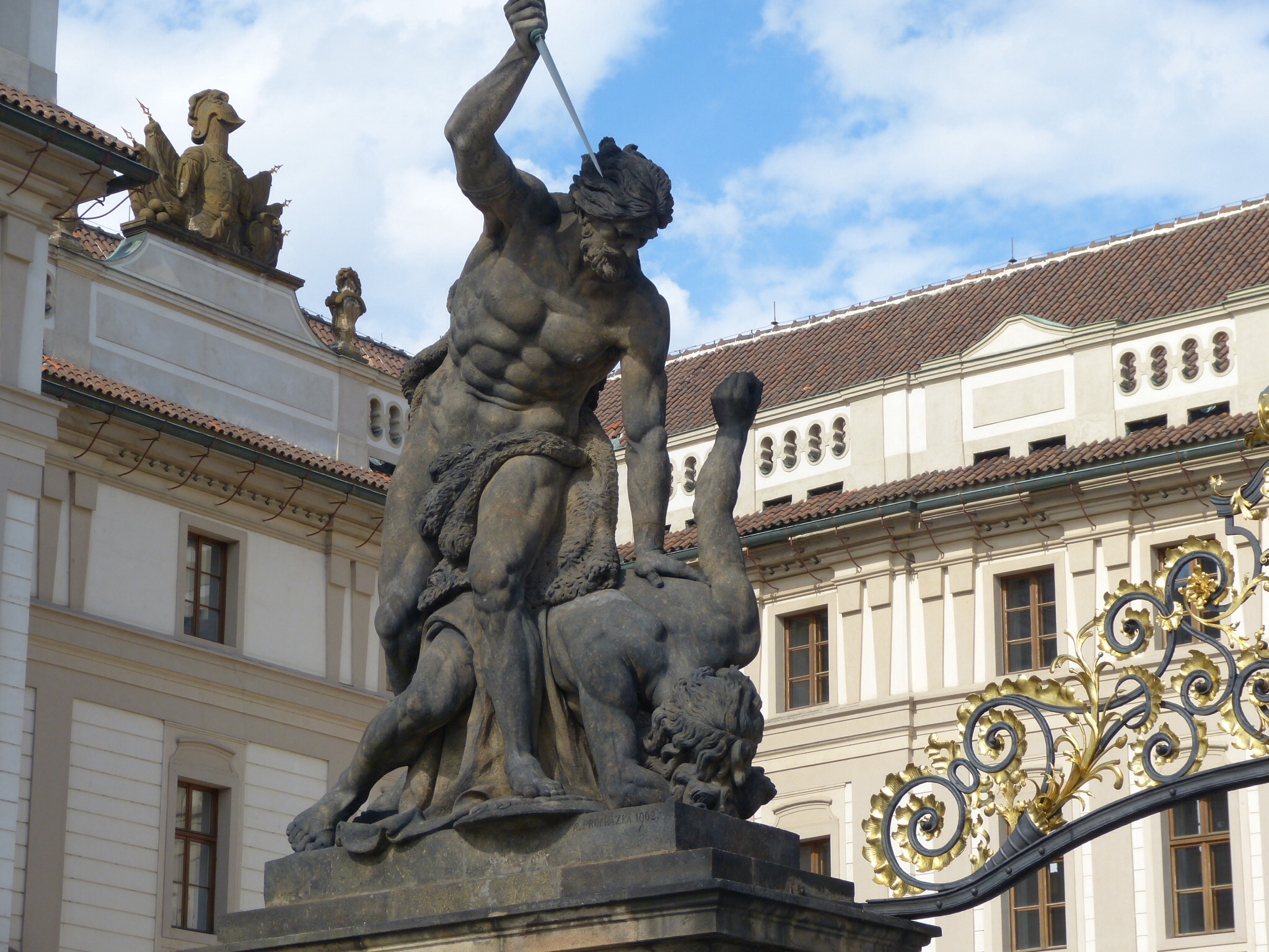 This fine fellow is on the left of the entrance.