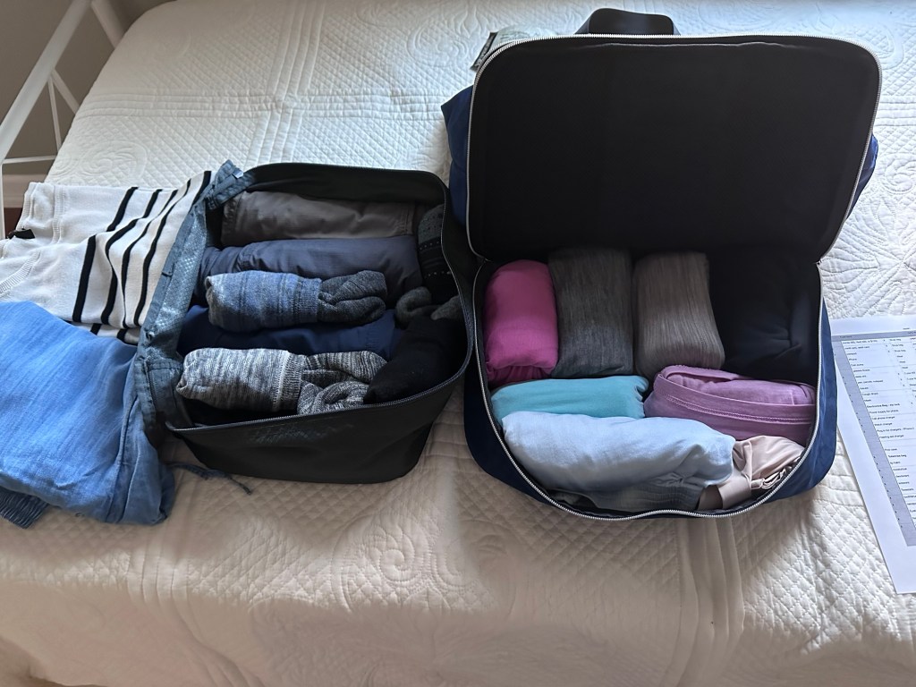 For this trip I used packing cubes (the bottom of my blue bag is a detachable packing cube) and a combo of rolling and folding.