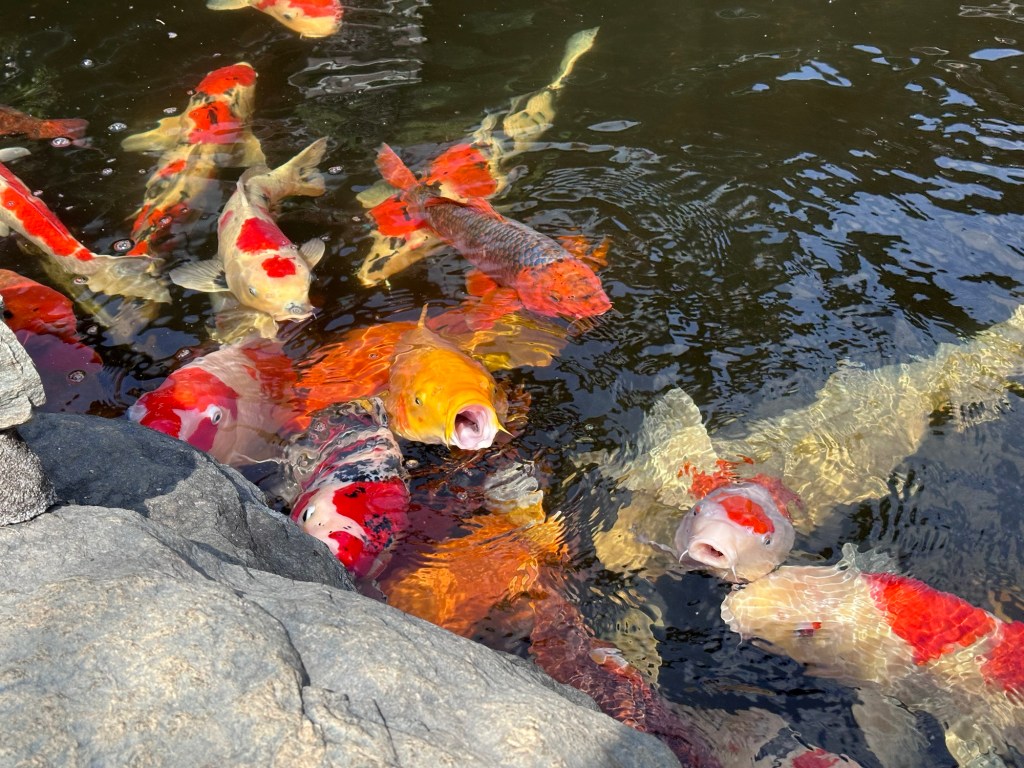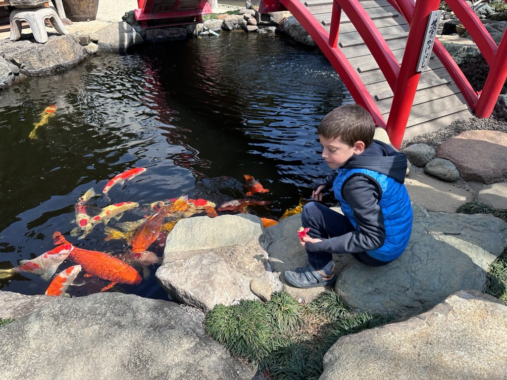 I won’t tell you how much time I spent at the koi pond. Let’s say my little friend in the blue jacket got bored before I did. I couldn’t help but notice the gold one with the big mouth and think about a human version who continues to make a splash.