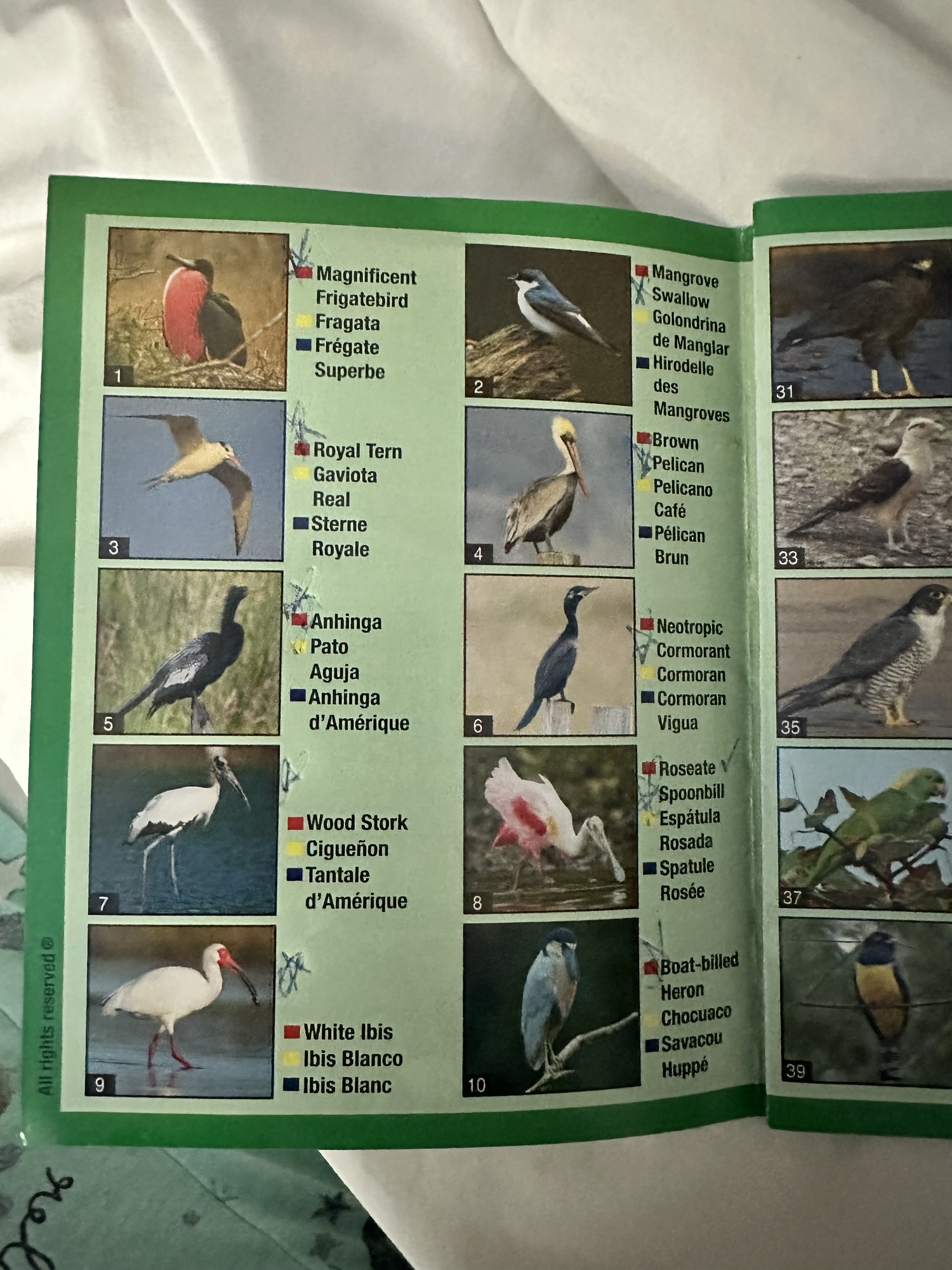 At one time or another, we spotted most of the 60 birds pictured in the guide we were given. How very lucky were we! Of course, Malo had a lot to do with our “luck”. The reason he modified our itinerary was to choose a time when the tides were at the optimum level for viewing wildlife.