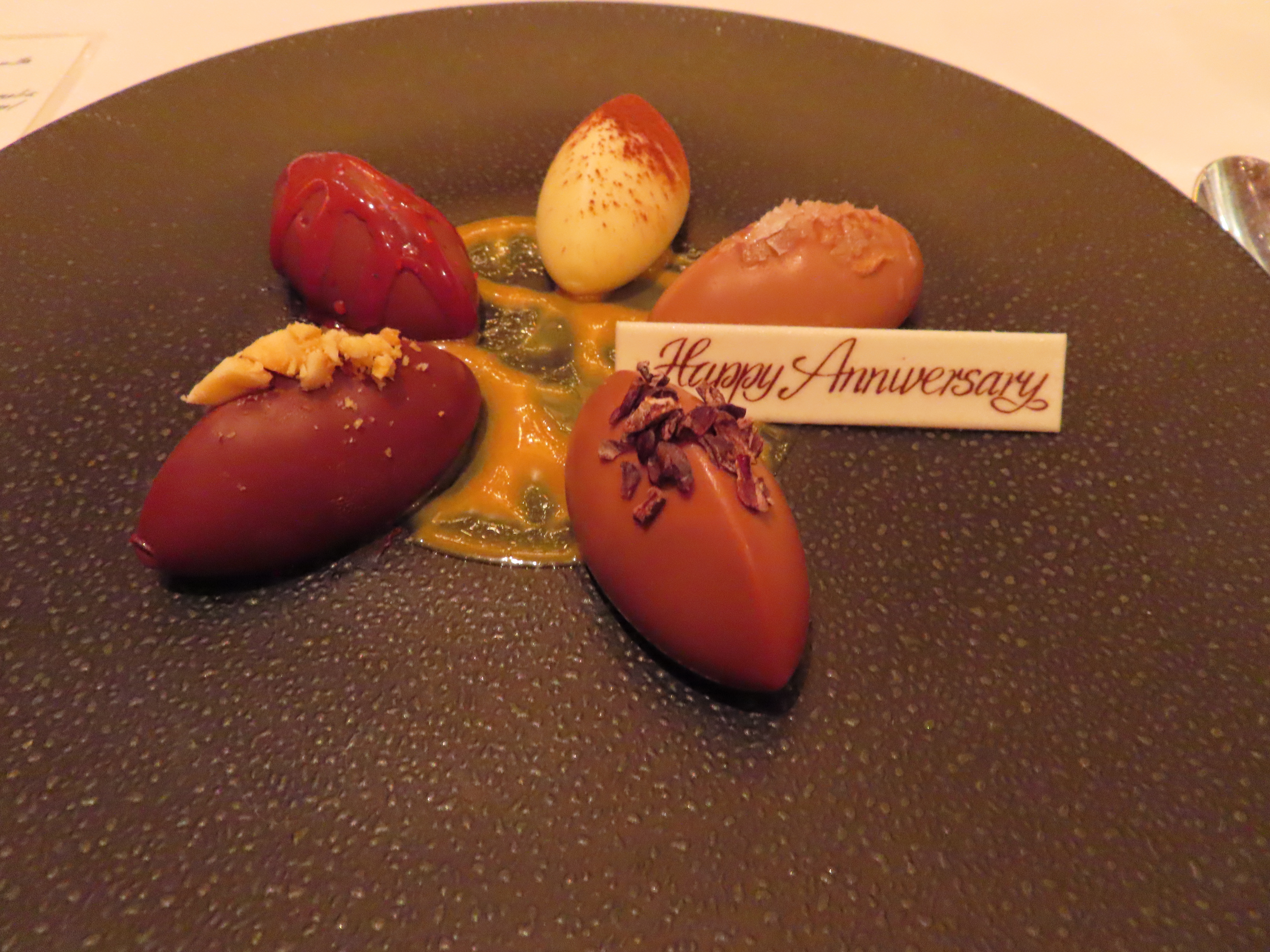 My favorite thing, however, was our anniversary dinner. Pricy, yes, but very delicious and quite an elegant experience. Can you tell from the photos below which was the main course?