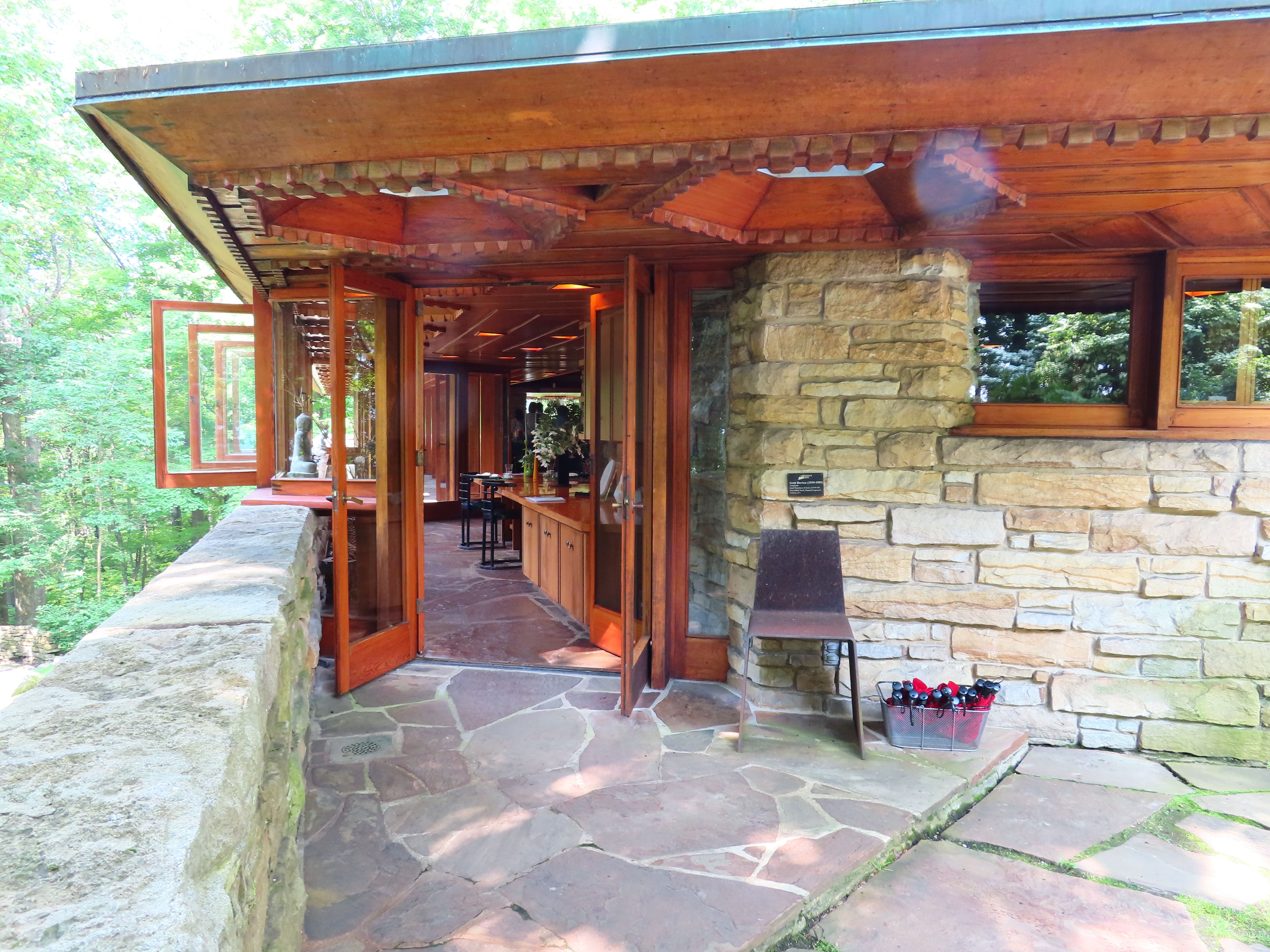 A quick internet search uncovered a special Fallingwater experience–a sunset tour, lasting three hours, ending with appetizers on one of the decks. The tours are only offered on Friday and Saturday nights, are limited to 10 participants, allow interior photography, and include parts of the house not shown on the other tours. For $150 per person, you can pretend that you are a guest of the owners. Just our kind of gig.