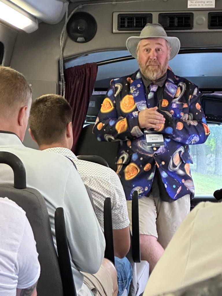 The rest of our time together was spent taking advantage of only some of the many area delights. We started with the “Magic Shuttle Bus” which transported us to four area vineyards. Jonathan, our driver/ guide was every bit as colorful as his wardrobe and as magical as the bus.