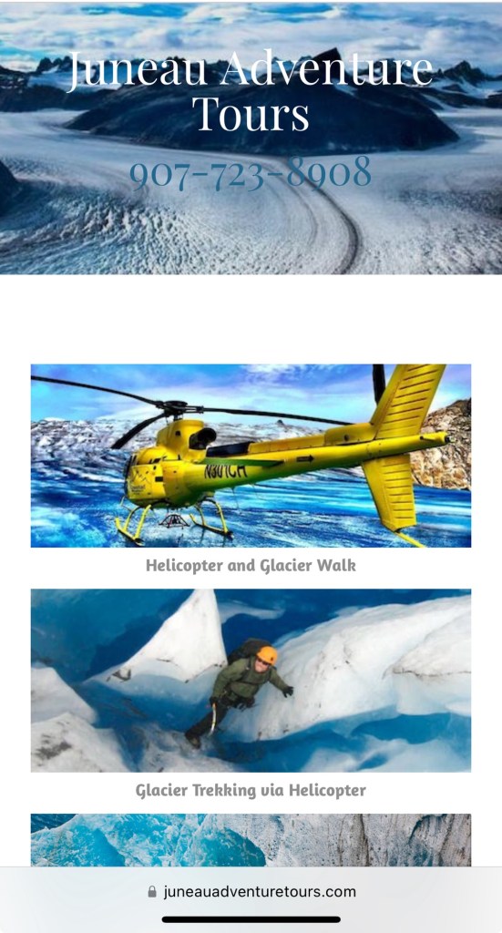 Although Alaska Shore Excursions had offerings for Juneau, by March all the ones I wanted were filled. Fortunately, Juneau Adventure Tours had availability for one of their helicopter tours to a glacier.