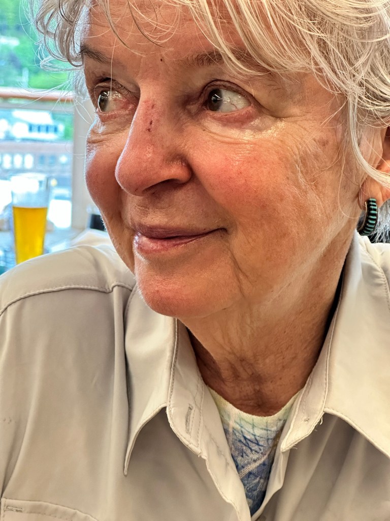 Shortly after I took the photo of her by the “liquid sunshine” sign, Jean tripped, managed to land on her nose, and proceeded to bleed profusely. Fortunately, it happened right next to the ship, so Viking’s excellent staff immediately sprang into action. She was whisked down to the medical center where they quickly staunched the bleeding. Their rapid treatment probably prevented Jean from returning home with a huge black eye.