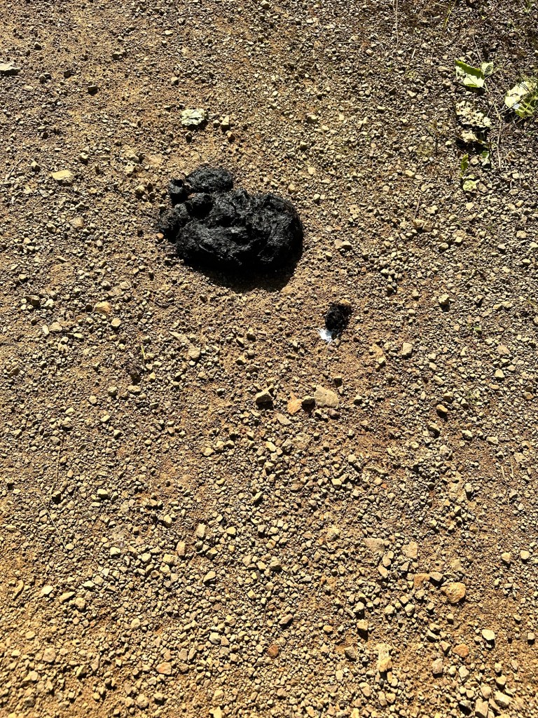 The first pile was deposited by a female, because the ladies STOP to relieve themselves. The males, on the other hand, don’t waste any time. They are “full speed ahead” so their “torpedoes” are scattered all along the trail.