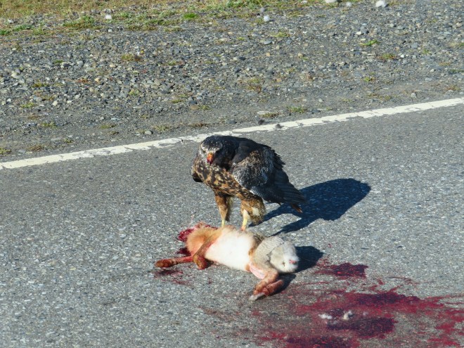 We were not without our national Geographic moments. As we drive the highways and by ways, we noticed several eagles and other large birds of prey sitting on fence posts. Were they watching the cars go by, as an avian form of TV? No, they had figured out that it was just a matter of time before some tasty road kill would make their grocery shopping much easier. Take a look.