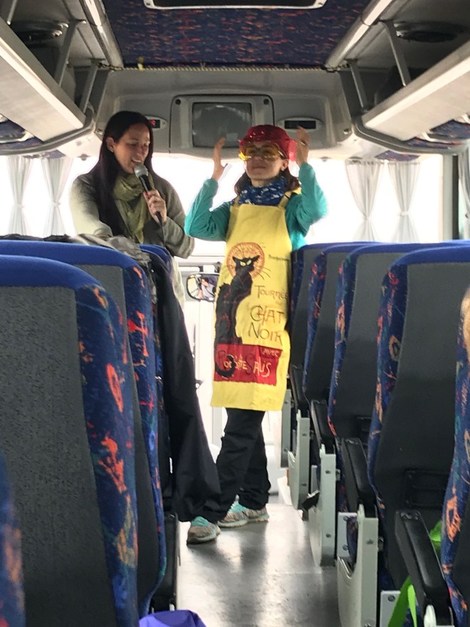 With a bus like this, however, you travel in comfort, and you really get to experience the countryside. There were only 12 travelers (plus guides) on a bus that could carry over 40 passengers! With multiple interesting stops along the way, time passed quickly.