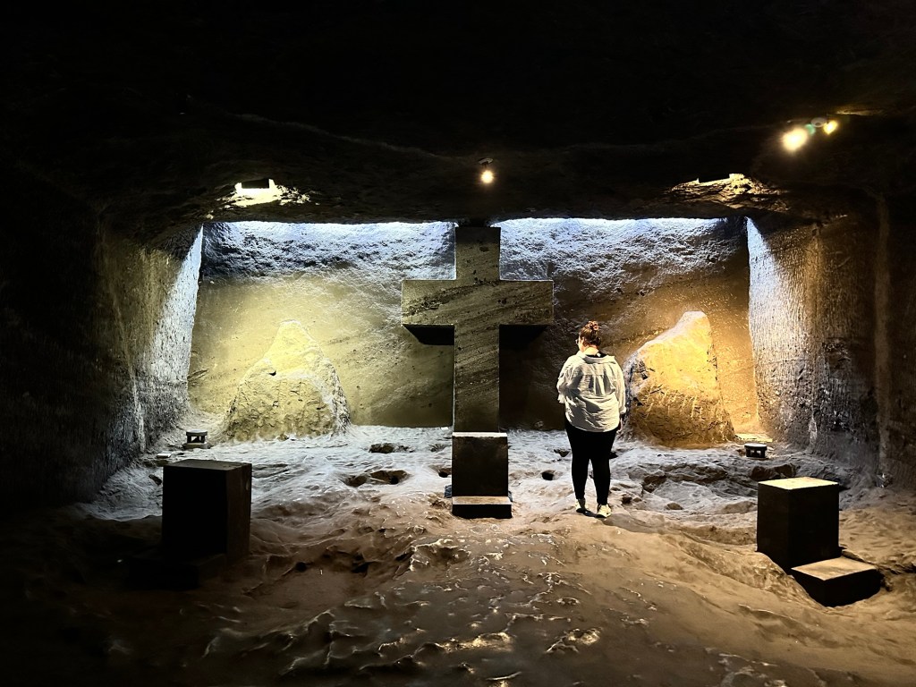 After all that, I expected the Salt Cathedral to be breath taking. It wasn’t. Of course, if your thing is walking along dimly lit corridors on the uneven ground of an old salt mine, you’ll be enthralled. Before you get to the “cathedral”, you walk along “stations of the cross” that are essentially stone crosses carved in alcoves.