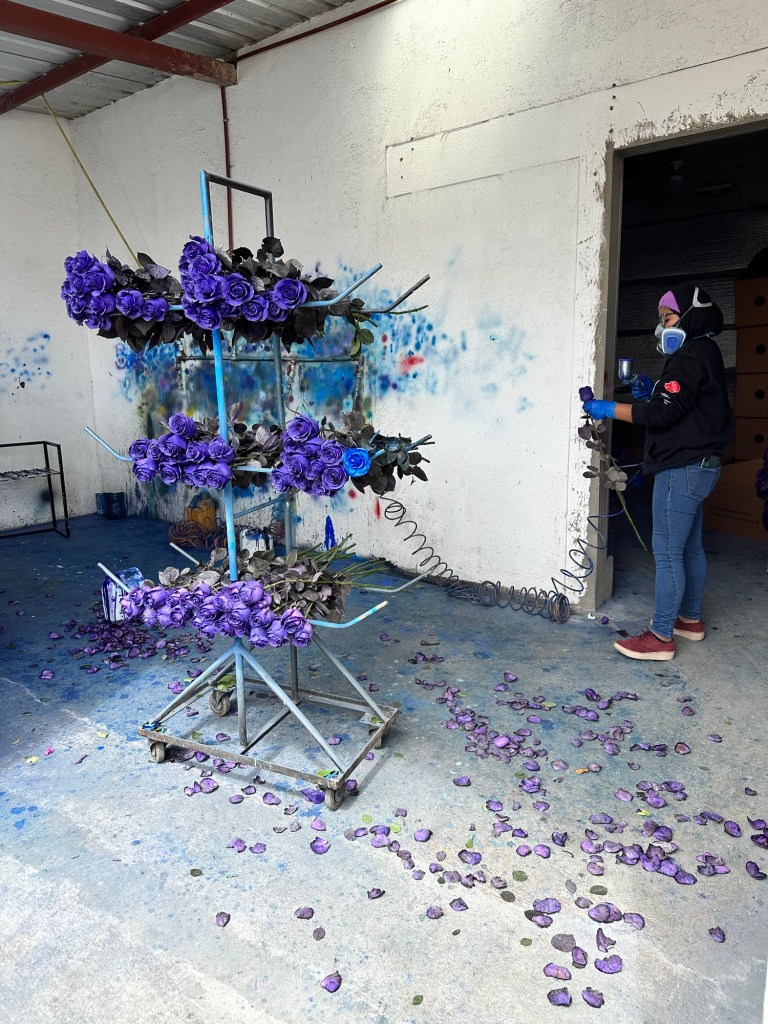 If you’re having a special event and can’t find a hue that compliments your color scheme, no problem. The roses can be sprayed to your specifications. Think I’m kidding? Take a look.
