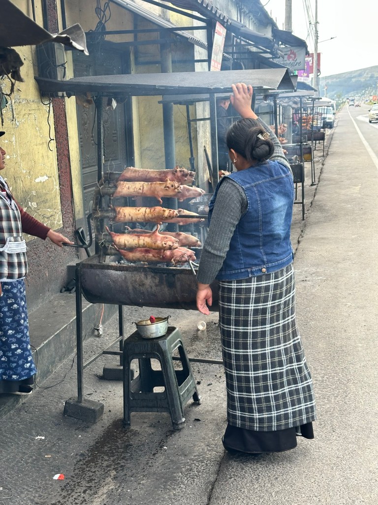 This road side cuy producer sells about 40 cooked guinea pigs a day! Cuy is considered a delicacy here in Ecuador, and will set you back about $50 if you ordered it in a restaurant.