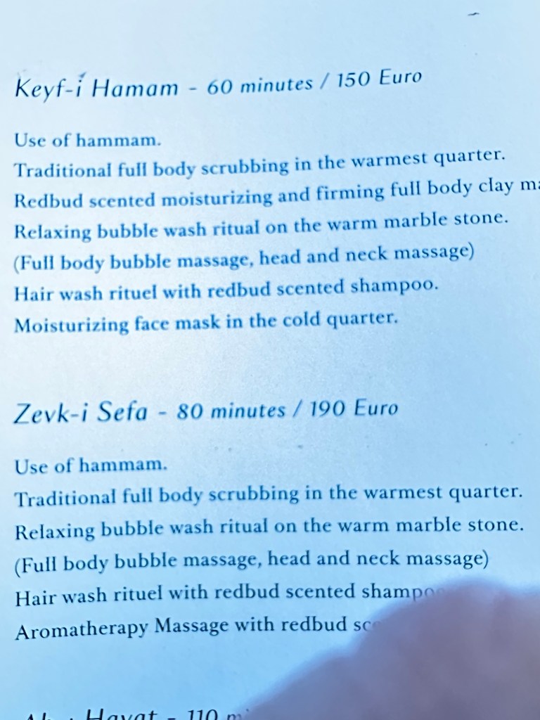 I can’t tell whether the description of the hammam is readable, but just in case it isn’t, here’s the gist.