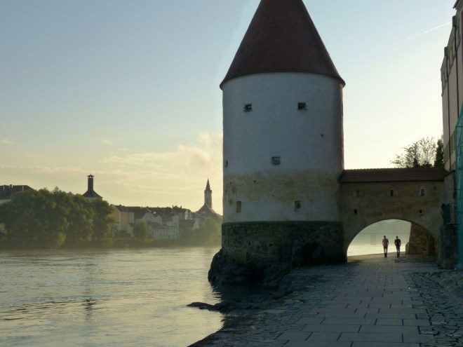 Passau’s ancient tower at sunset