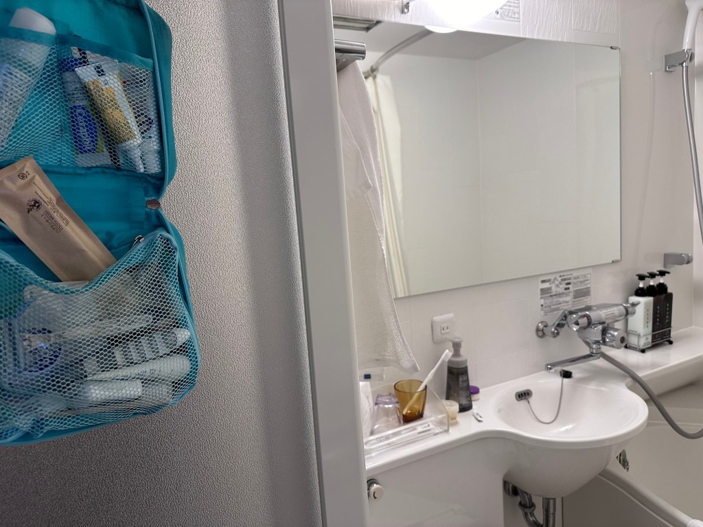 There isn’t much counter space in the bathrooms so hanging toiletries bags make life easier, at least while using the bathroom.