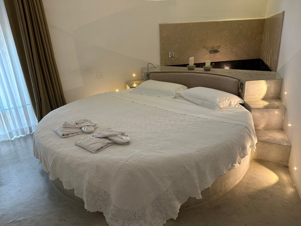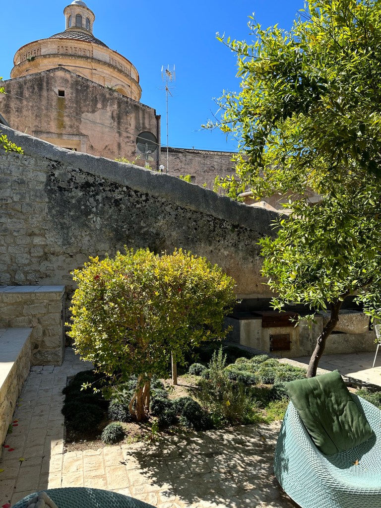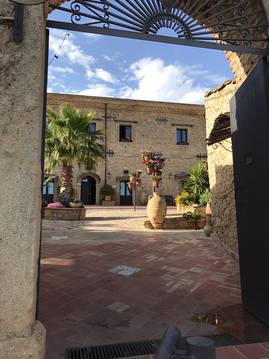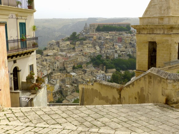 Meanwhile, our three heroines were confronted with 59 steps (the exact number of steps as Modica—if my grandmother had been alive she would have called her bookie to “play” that number). Once again, I was grateful to the exercises classes at the Y, because we carried our own bags —and my two weigh about 27 pounds. But the best is yet to come. After our trek, we discovered that Sally and I were not only sharing a room, we were also sharing a bed. Fortunately king sized, but still.