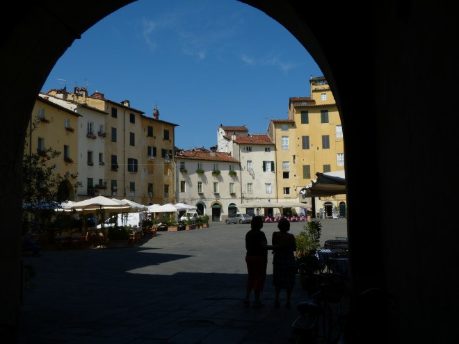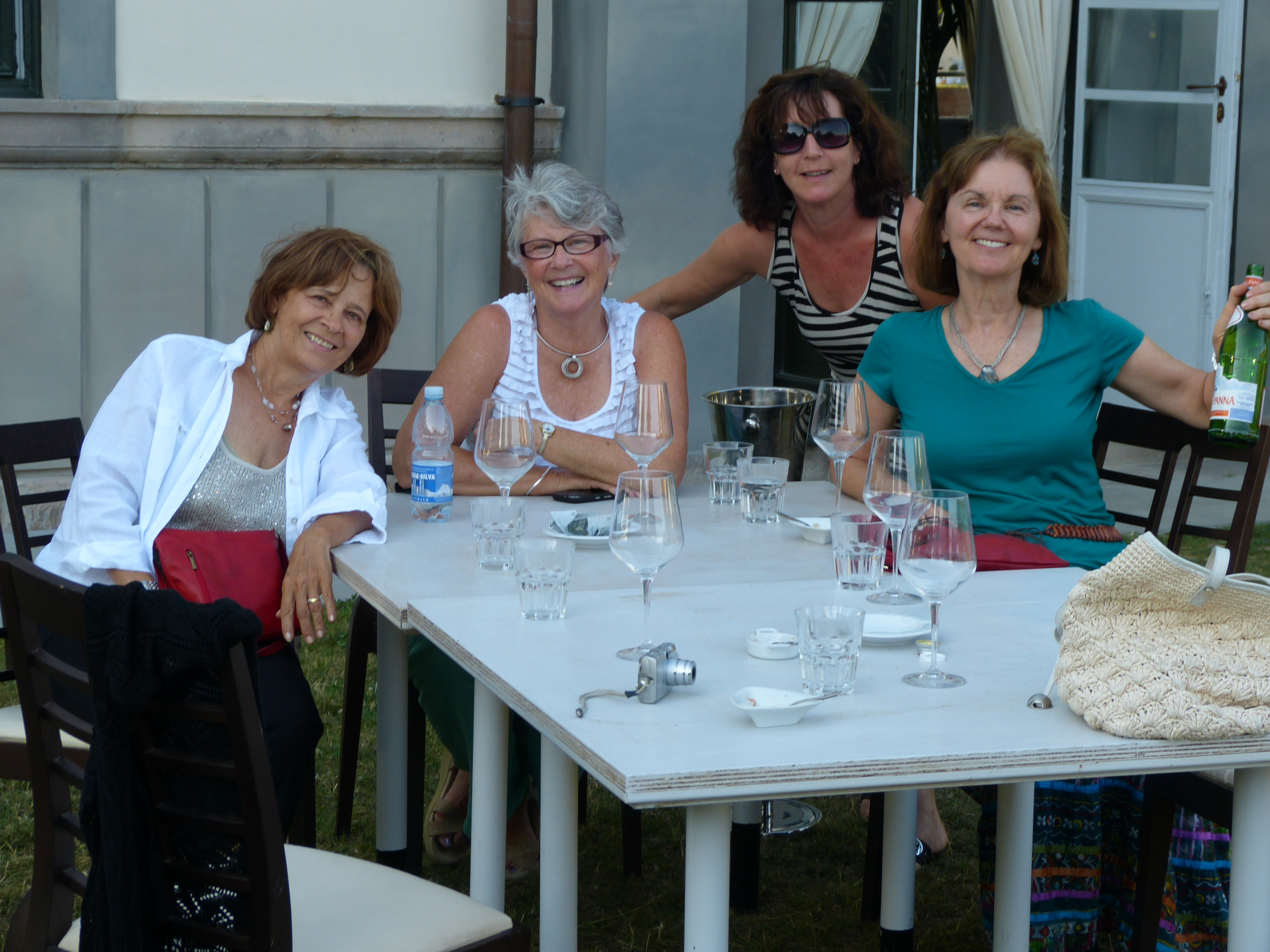 Of course we had to sample some of that wonderful cheese. Eight different kinds. Washed down with wine, accompanied by prosciutto and salami and bread.